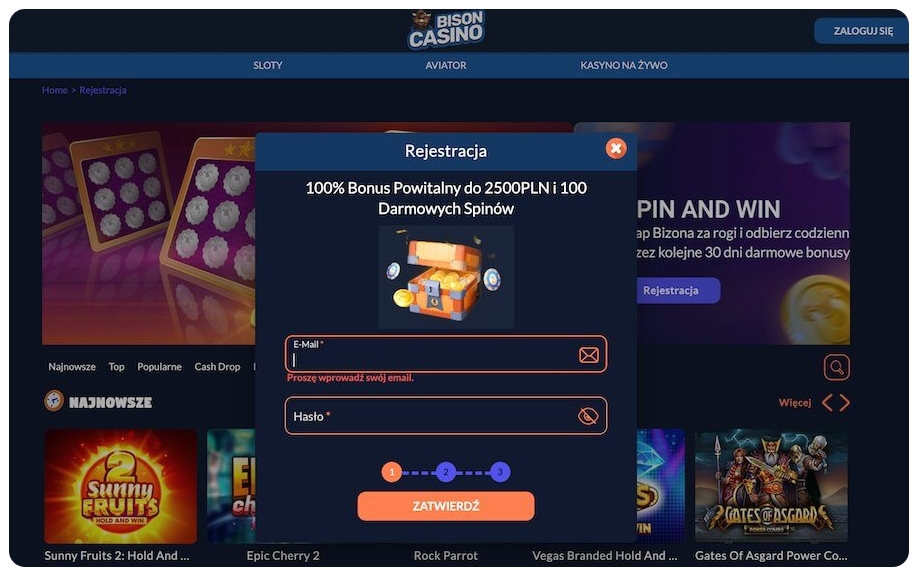 Rejestracja w Bison Casino