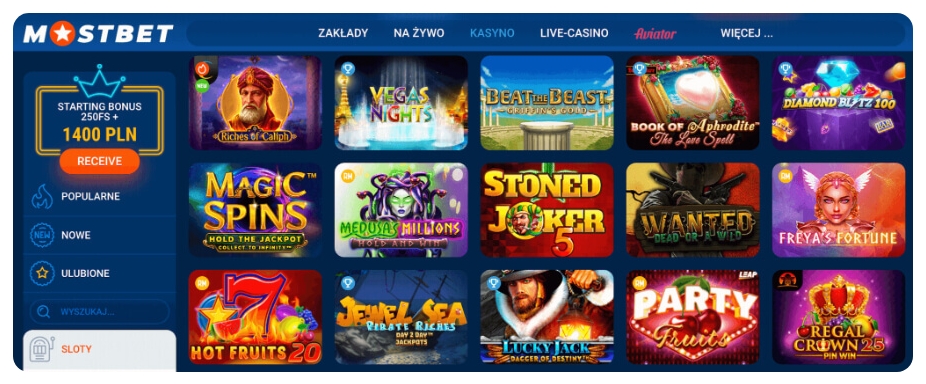 Automaty do gier stanowią największą część oferty Mostbet Casino. Dostępne są setki tytułów od renomowanych dostawców, takich jak Pragmatic Play, NetEnt i Play’n GO.